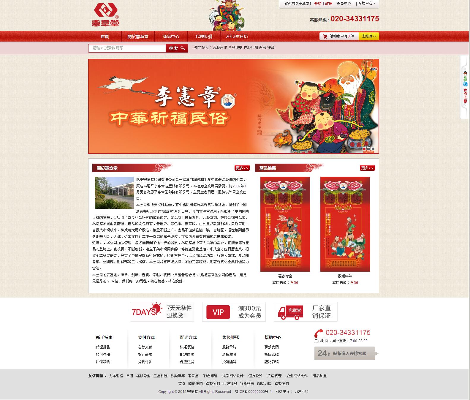 项目名称:恩平宪章堂印务有限公司 签定时间:2013-11-19 项目网址:http://www.xianzhangtang.com 项目简介: 恩平憲章堂印務有限公司是一家專門編篡和生產中國傳統曆書的企業,原名為恩平李