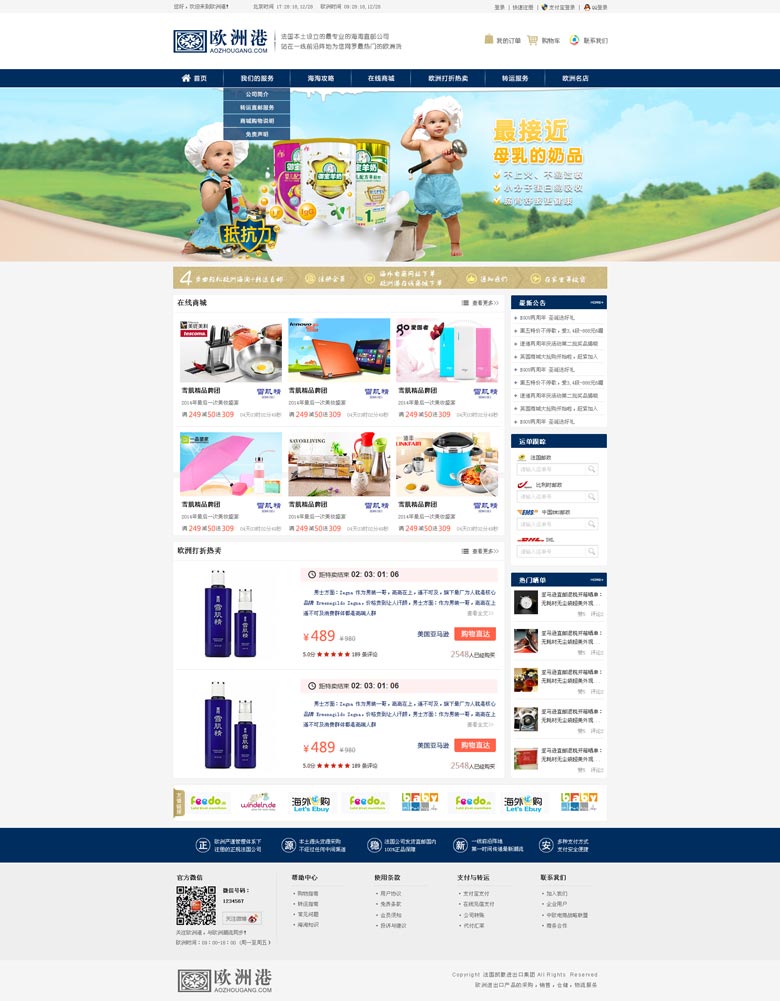近日,力洋网络成功签约欧洲港商城,为其提供专业的网站建设服务。欧洲港商城专注于欧洲进出口产品的采购、销售、仓储、物流服务。关注欧洲港,与欧洲潮流同步!欧洲港商城目前已经进入建设收尾阶段,官网即将上线。小编在此提前放出官网设计图供大家