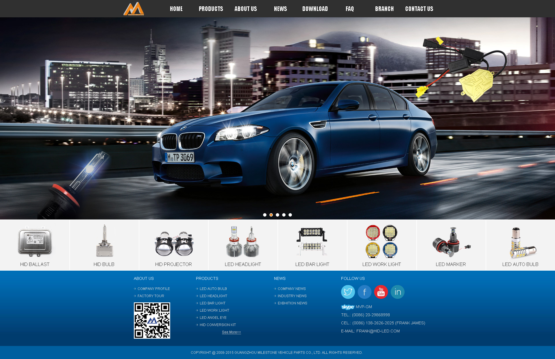项目名称:GUANGZHOU MILESTONE VEHICLE PARTS CO.,LTD. 签定时间:2015-8-18 项目网址:http://www.hid-led.com