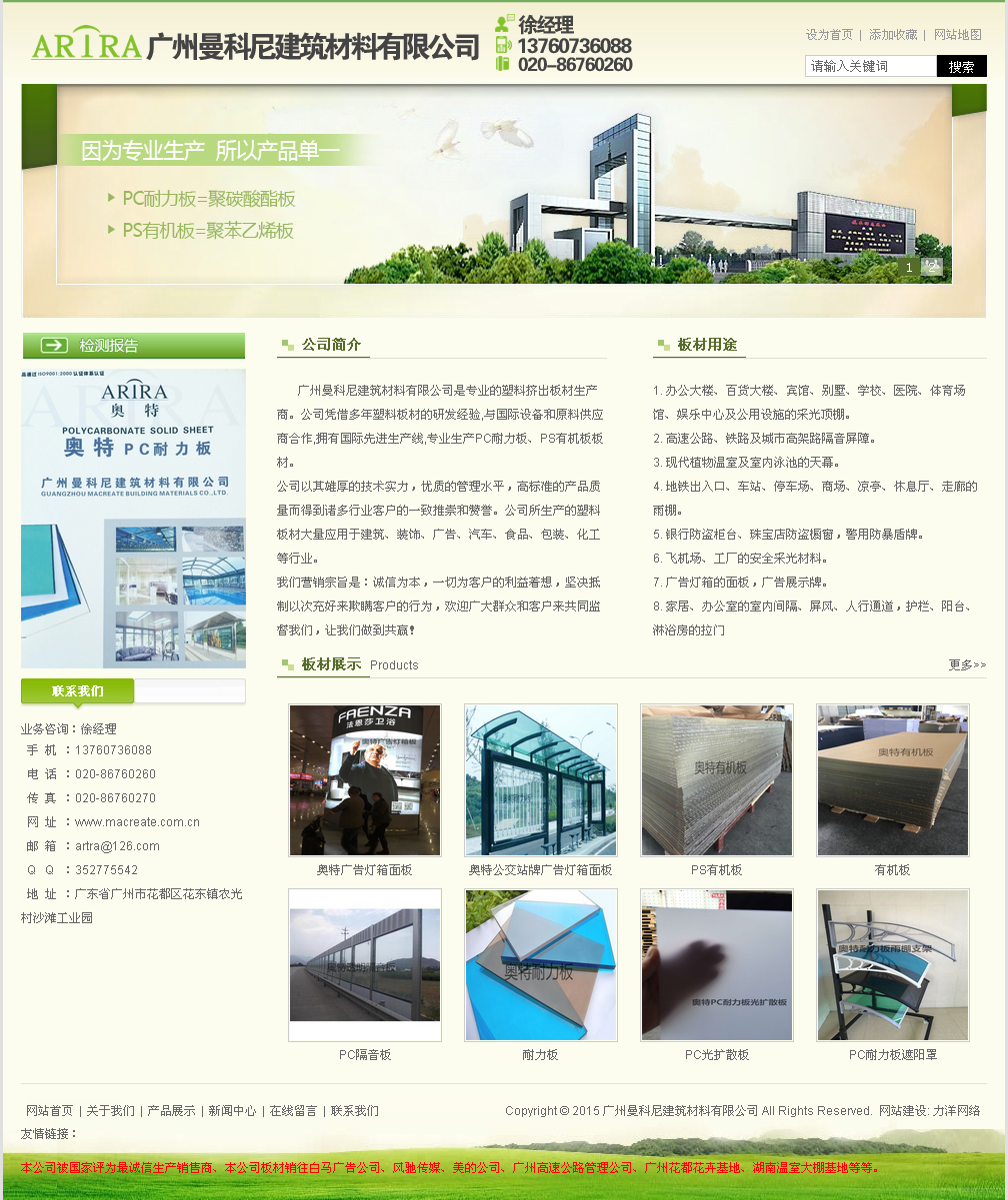广州曼科尼建筑材料有限公司是专业的塑料挤出板材生产商。公司凭借多年塑料板材的研发经验,与国际设备和原料供应商合作,拥有国际先进生产线,专业生产PC耐力板、PS有机板板材。