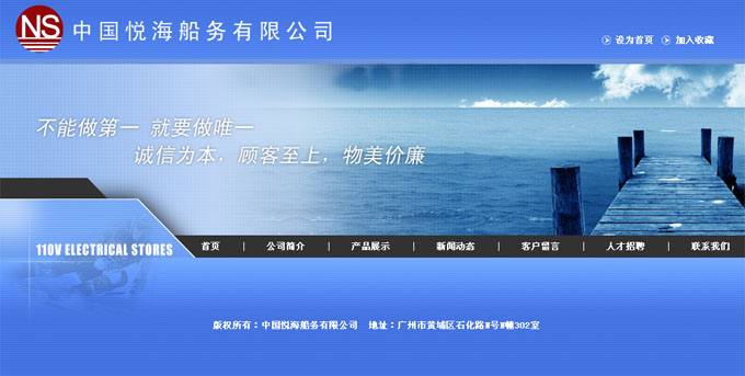项目名称:中国悦海船务有限公司网站建设签定日期:2009年9月10日网站首页效果图: