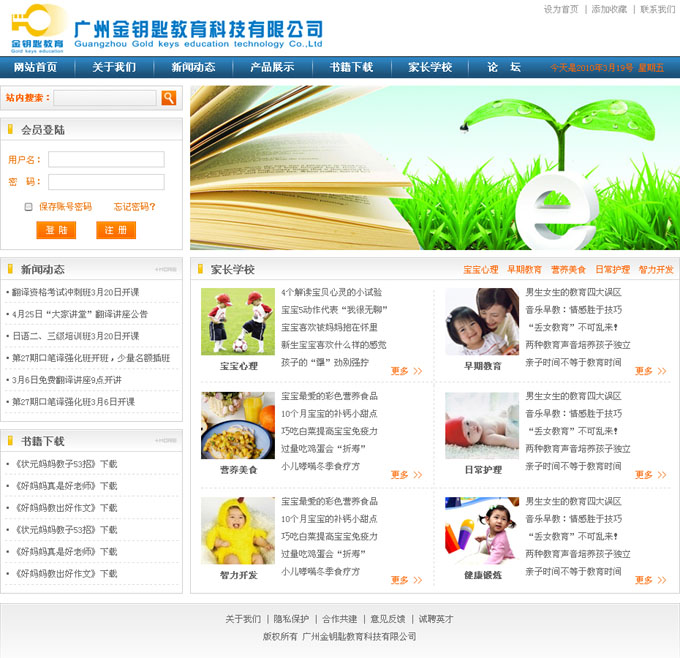 项目名称:广州金钥匙教育科技有限公司网站建设签定日期:2010年3月15日网站首页设计效果: