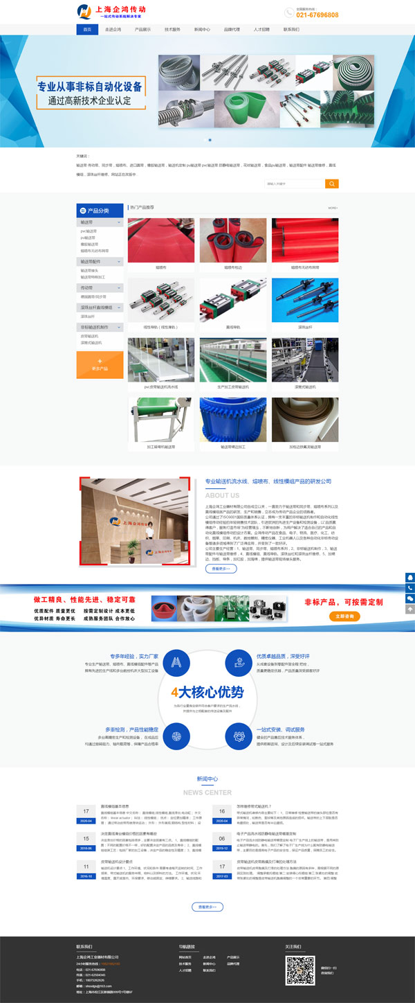 项目名称:上海企鸿工业器材有限公司建设网站 项目网址:www.shqhcd.com 公司简介: 上海企鸿工业器材有限公司自成立以来,一直致力于输送带和同步带、熔喷布系列以及直线传动类产品的研发、生产和销售,立志成为传动产品企业的领跑