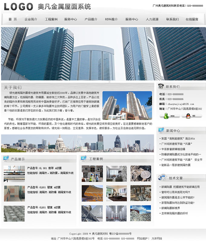 项目名称:广州市奥凡建筑材料有限公司网站建设签定日期:2010年8月25日广州市奥凡建筑材料公司,是一家集设计、生产、安装及配套工程为一体的轻钢结构产品的专业公司。并广泛涉足屋面、墙面、檩条、幕墙等领域。随着世界建筑行业的发展,奥凡公司忠实