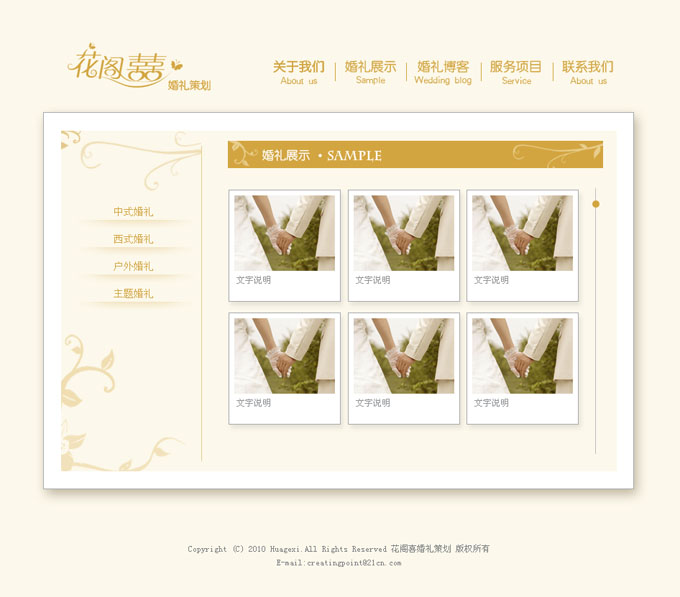 项目名称:花阁喜婚礼策划有限公司网站建设签定日期:2010年9月15日网站首页设计稿:
