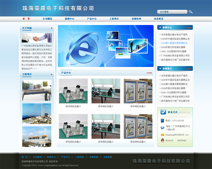项目名称:珠海荣康电子科技有限公司网站建设签定日期:2010年10月20日网站网址:www.rongkangdianzi.com公司简介:珠海荣康电子科技有限公司是一家从事电力、石化、冶金、楼宇自控行业自动化仪表生产、销售的专业公司,总部位
