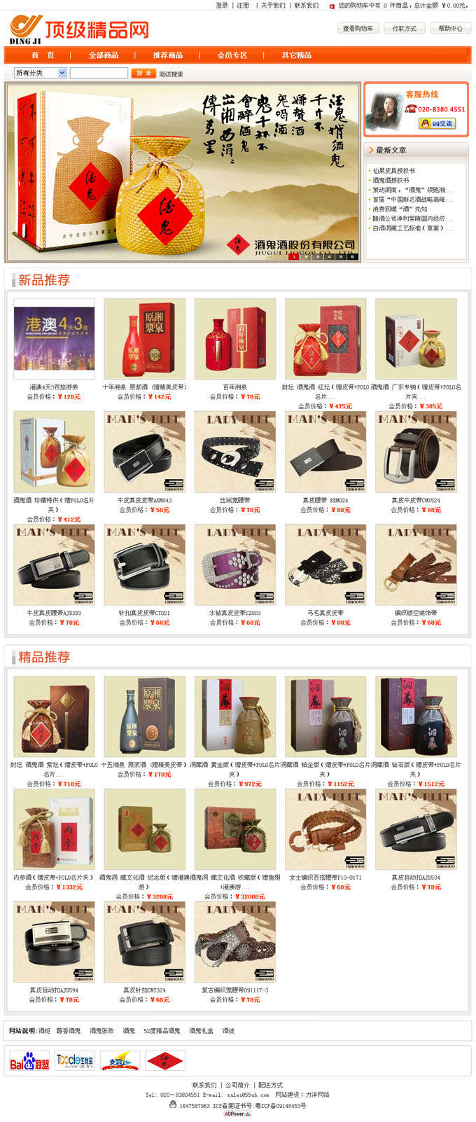 项目名称:广州鼎极商贸有限公司网站建设签定日期:2011年1月12日网站网址:www.55ub.com广州鼎极商贸有限公司于2010年底取得酒鬼酒供销有限责任公司签约代理商,负责销售酒鬼酒供销有限责任公司生产的酒鬼酒系列、湘泉系列、洞藏系列