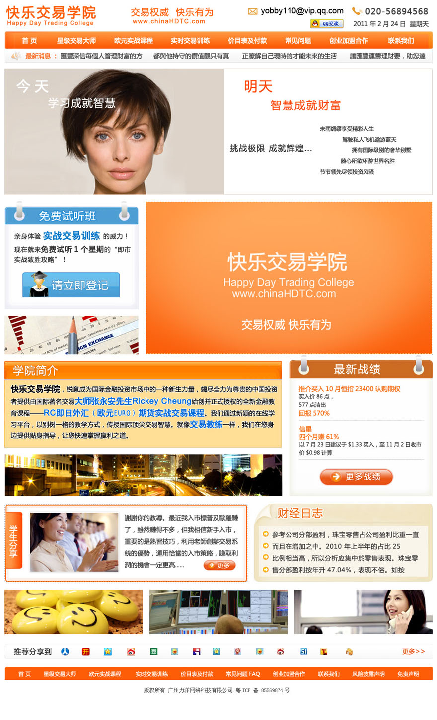 项目名称:快乐交易学院网站建设签定日期:2011年2月10日网站首页设计稿:(缩略图)