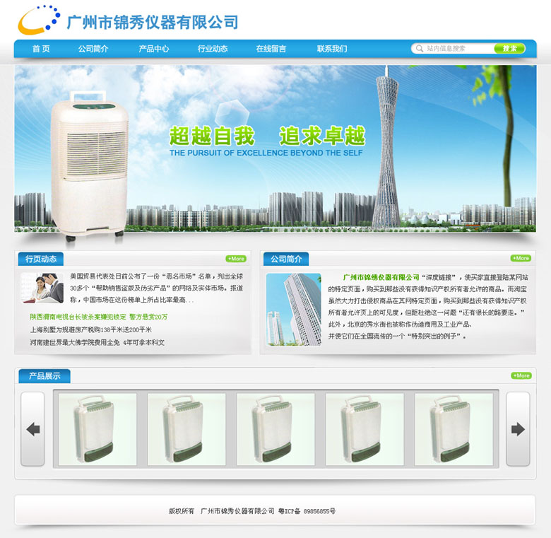 项目名称:广州锦秀仪器有限公司网站制作签定日期:2011年2月26日锦秀仪器公司是一间主营进口仪器、科学器械的专业公司,主要经销日本三洋医用冰箱、仟岛除湿机、恒湿机、加湿器、空气灭菌净化器等日本技术、国际标准的高科技产品。锦秀公司有着巨大的