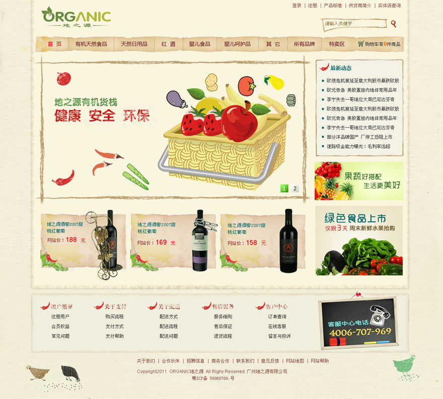 项目名称:地之源有机食品有限公司网站建设签定日期:2011年7月5日网站首页设计稿:(缩略图)