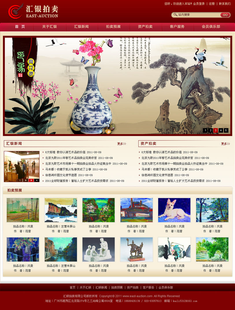 项目名称:深圳汇银拍卖有限公司网站建设签定日期:2011年8月4日网站首页设计稿(缩略图):