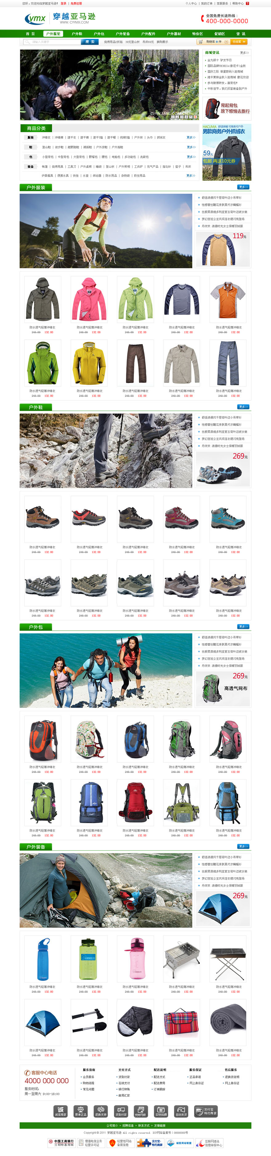 项目名称:穿越亚马逊户外用品网网站建设签定日期:2011年9月14日注册网址:www.cyymx.com网站首页效果图(缩略图)