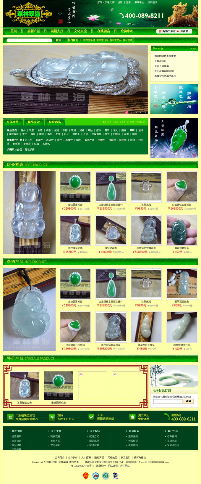项目名称:华林翡翠网站建设签定日期:2011年12月6日网址:http://www.hualincuihai.com/华林翠海股份有限公司成立于2008年以著名的华林玉器街为依托,成长于充满古典魅力与现代活力的广州市。专门经营各种翡翠饰品: