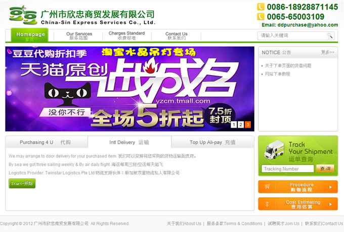 项目名称:广州市欣忠商贸发展有限公司网站建设签定日期:2012年3月15日网址:http://www.sg-daigou.com