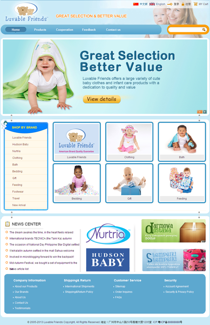 项目名称:广州速来母婴用品有限公司网站建设签定日期:2012年6月20日网址:http://www.luvablefriends.org