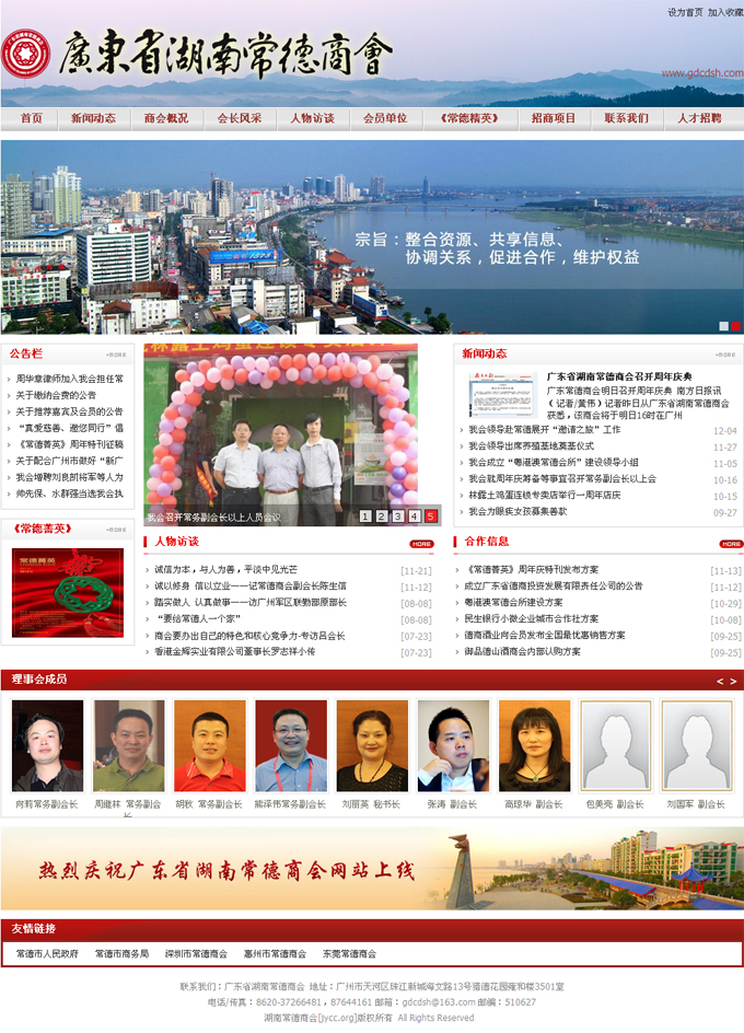 项目名称:广东省湖南常德商会网站建设签定日期:2012年7月12日网址:http://www.gdcdsh.com广东省湖南常德商会是经广东省民政厅批准成立的非盈利性社会团体。商会由在广东的常德籍商业人士联合发起成立,本着“整理