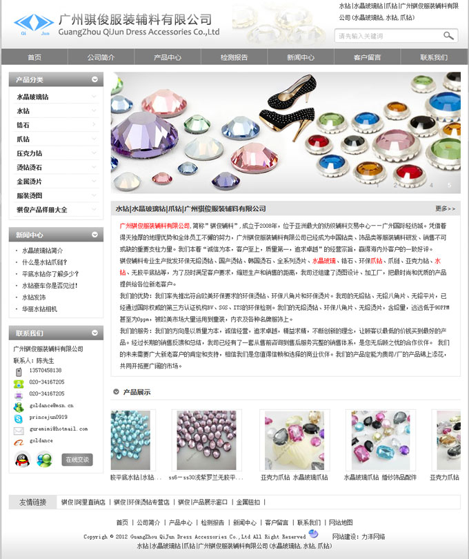 项目名称:广州骐俊服装辅料有限公司网站建设签定日期:2012年9月10日网址:http://www.crystalsell.com广州骐俊服装辅料有限公司,简称”骐俊辅料”,成立于2008年,位于亚洲最大的纺织辅料交