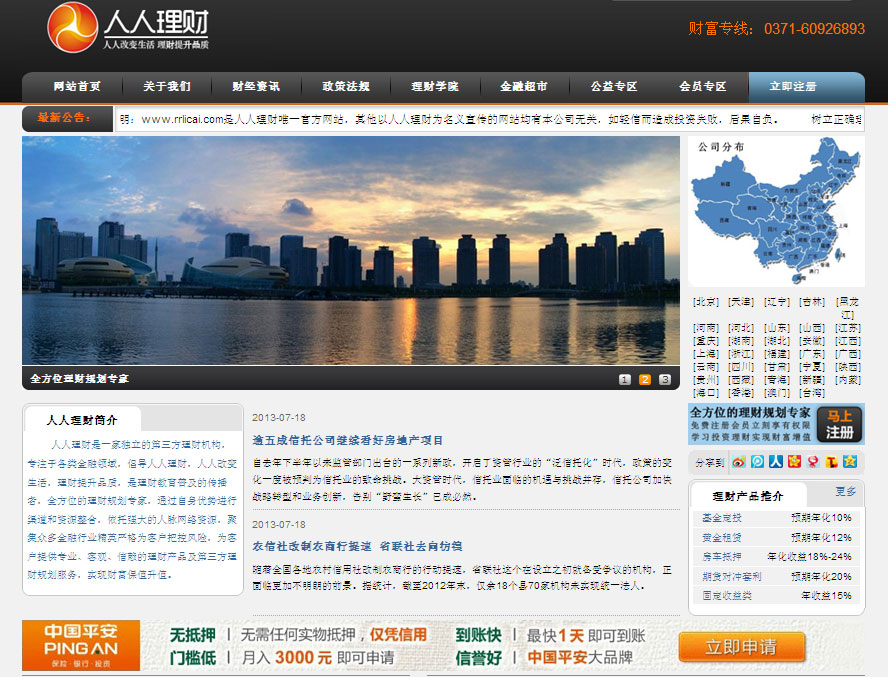 项目名称:人人理财网站建设签定日期:2013年1月15日网址:http://www.rrlicai.com/人人理财是一家独立的第三方理财机构,专注于各类金融领域,倡导人人理财,人人改变生活,理财提升品质,是理财教育普及的传播者,全方位的理