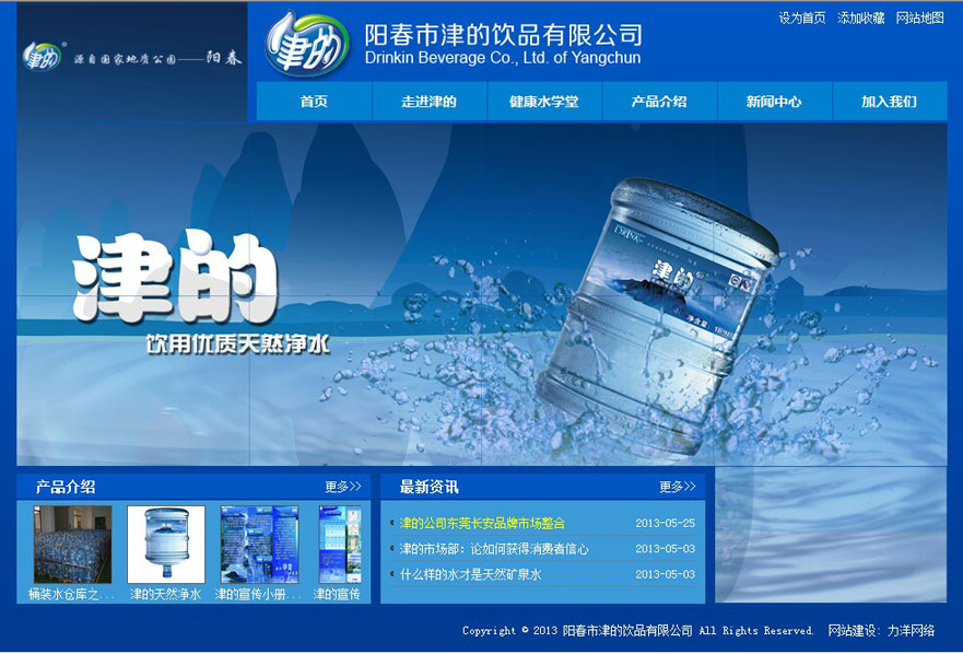 项目名称:阳春市津的饮品网站建设签定日期:2013年3月18日网址:http://www.drinkin.com.cn本公司由阳春市与东莞长安商会联手合作,创立于2006年。公司坐落在中国国家地质公园——阳春市春湾镇