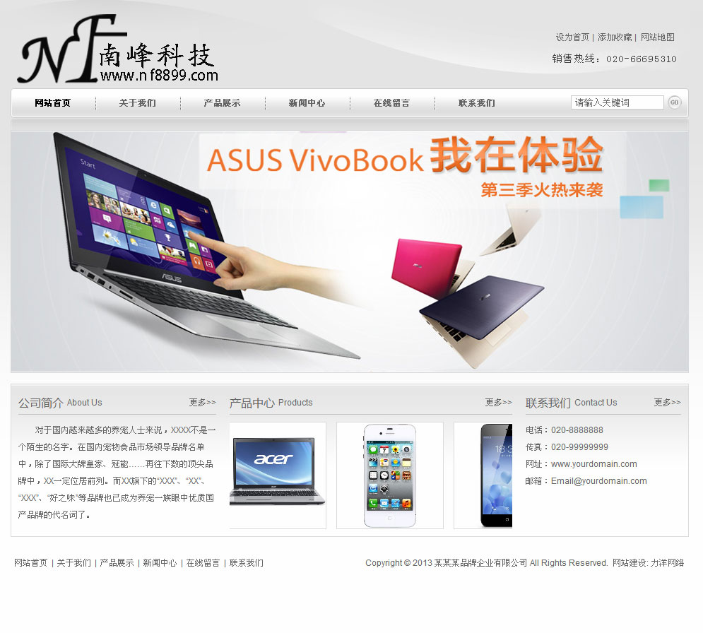 项目名称:南峰科技网站建设 签定日期:2013年3月25日 网址:http://www.nf8899.com