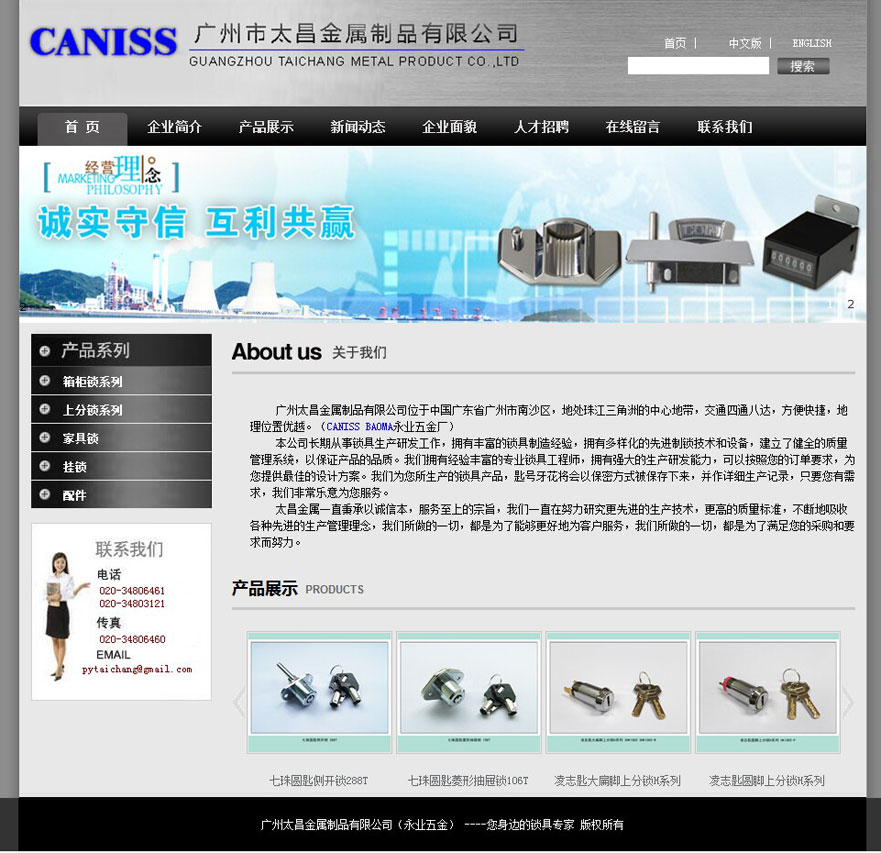 项目名称:广州太昌金属制品有限公司网站建设签定日期:2013年4月9日网址:http://www.pyyongye.com广州太昌金属制品有限公司位于中国广东省广州市南沙区,地处珠江三角洲的中心地带,交通四通八达,方便快捷,地理位置优越。(