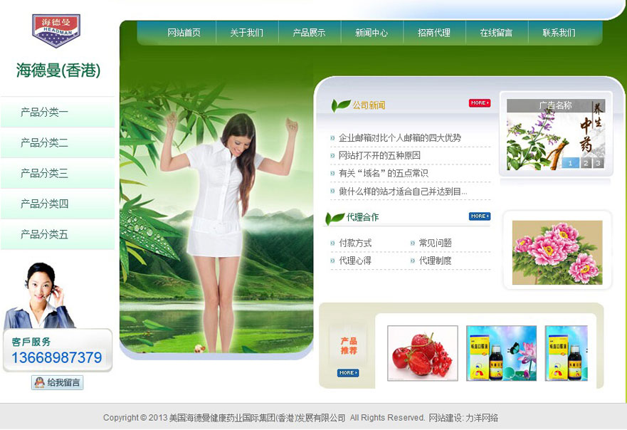 项目名称:海德曼健康药业网站建设签定日期:2013年4月16日网址:http://hdmbaojianpin.com美国海德曼健康药业国际集团(香港)发展有限公司是集研发、生产、销售为一体的知名跨国集团公司,总部设在美国佛罗里达州,公司拥有