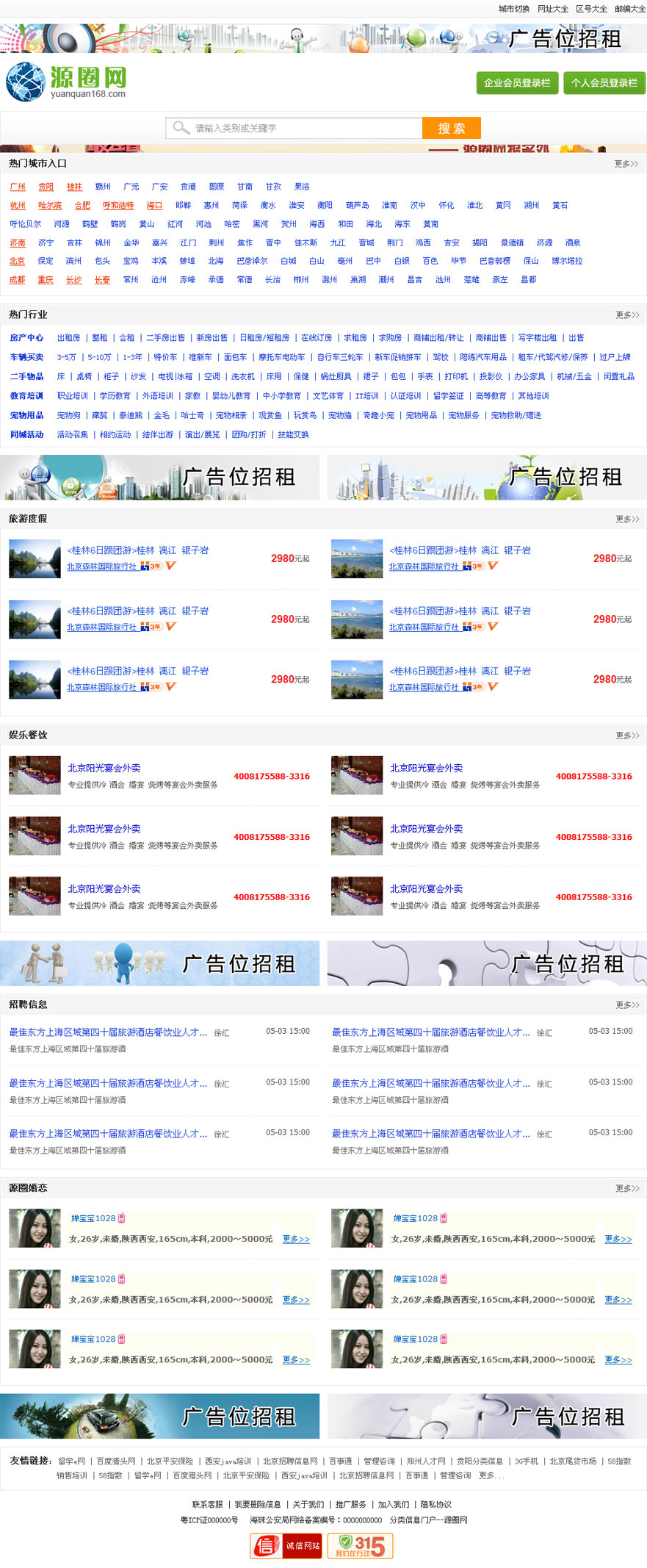 源圈网认真倾听用户的需求,细分深入挖掘用户的潜在需要,并高效、全面地满足用户的各种需要。提供房屋租售、招聘求职、商家黄页、二手物品、二手车交易、宠物票务、旅游交友、餐饮娱乐、团购等信息服务。将用户所需所求的资源都圈在源圈网这个实用的平台上,源圈网不仅是一个资源源源不断、人脉圈圈圈融通、资讯网网相连的平台,更是给到用户贴心管家式解决方案。