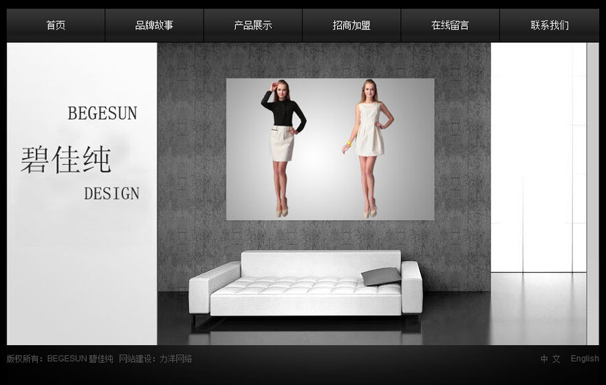项目名称:广州浩露服装网站建设签定日期:2013年5月8日网址:http://www.begesun.comBEGESUN碧佳纯女装品牌风格优雅、简约、又不失唯美,为追求高品质生活,追求人生质量的知性女性而设计,展现女性成熟的优雅气质,每月
