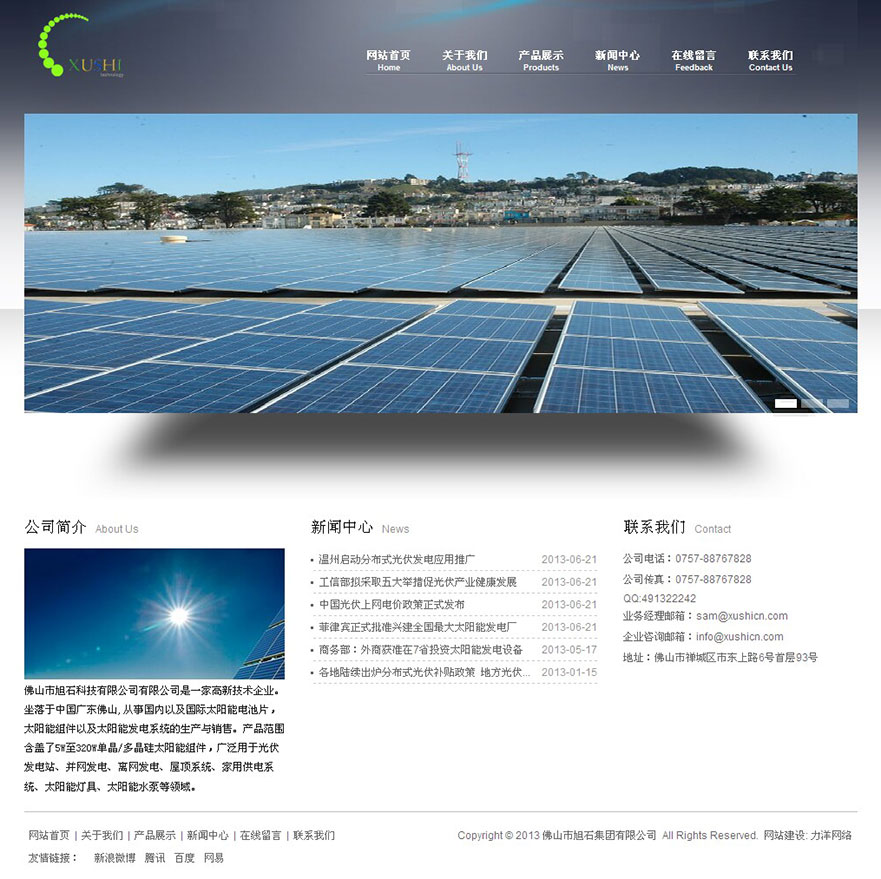 项目名称:佛山市旭石科技有限公司网站建设签定日期:2013年5月29日网址:http://www.xushicn.com佛山市旭石科技有限公司是一家高新技术企业。坐落于中国广东佛山,从事国内以及国际太阳能电池片,太阳能组件以及太阳能发电系统