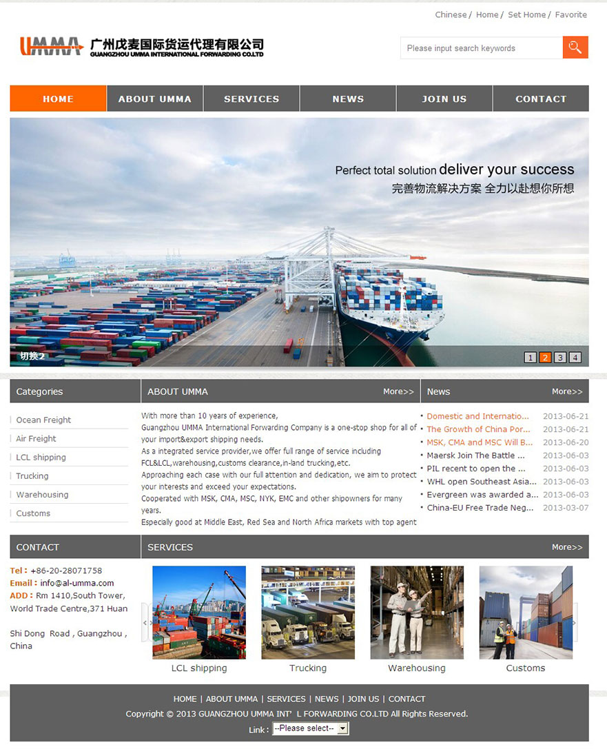 项目名称:广州戊麦国际货运代理有限公司网站建设签定日期:2013年5月31日网址:http://www.al-umma.comWithmorethan10yearsofexperience,GuangzhouUMMAInternationa