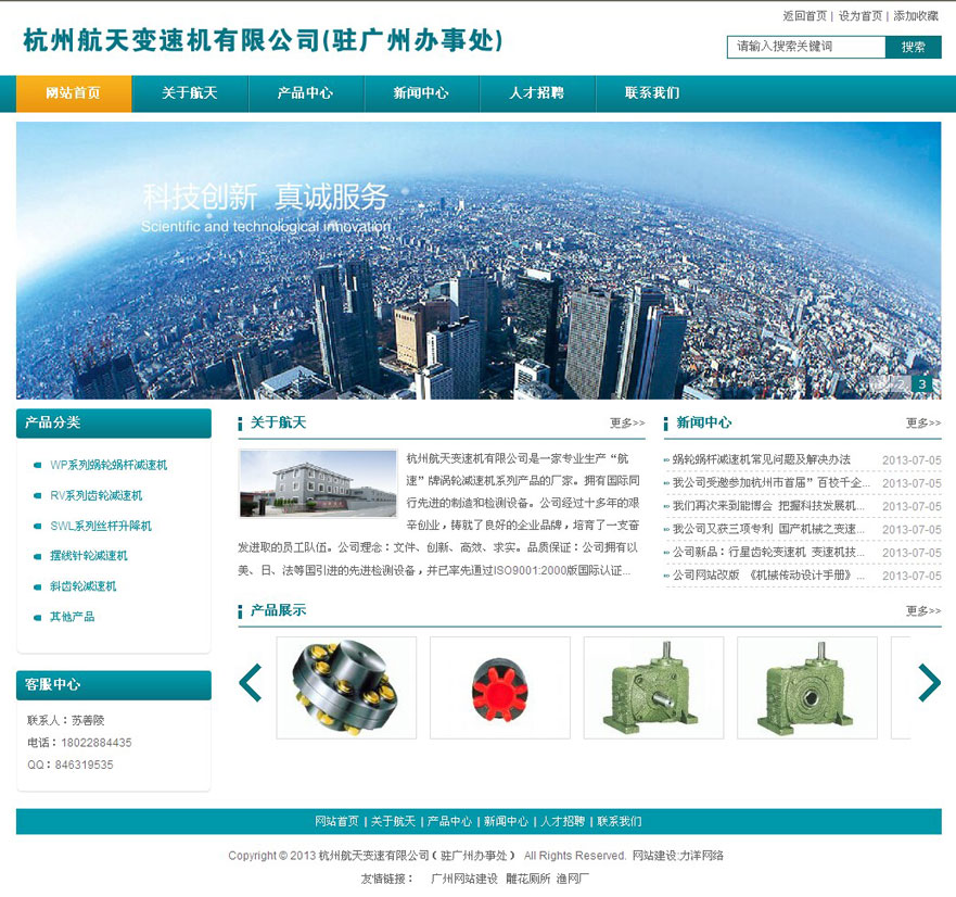 项目名称:杭州航天变速机有限公司网站建设签定日期:2013年7月2日网址:http://www.gz-speed.com杭州航天变速机有限公司是一家专业生产“航速”牌涡轮减速机系列产品的厂家。拥有国际同行先进的制造和