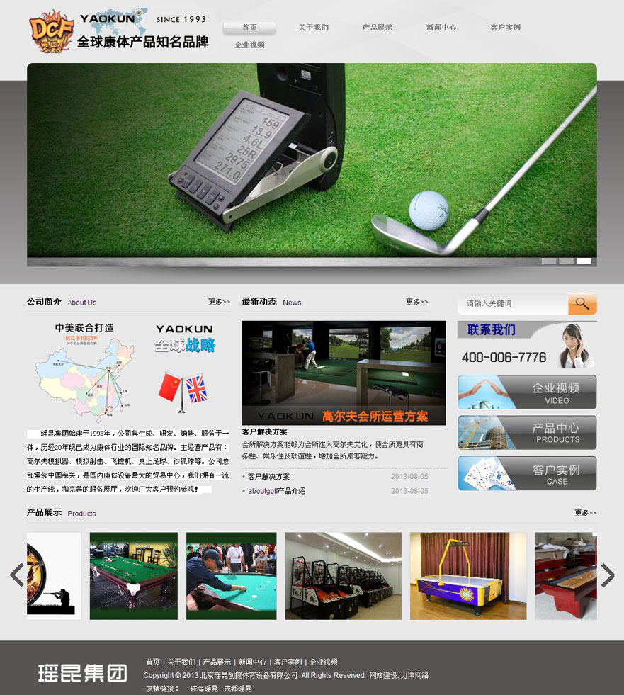 项目名称:北京瑶昆创捷体育设备有限公司网站建设签定日期:2013年7月19日网址:http://www.chinayaokun.com北京瑶昆创捷体育设备有限公司是康体行业知名品牌企业,总部位于北京经济技术开发区,世界500强企业的大多数都