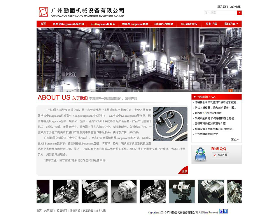 项目名称:广州勤固机械设备有限公司签定时间:2013-09-16项目网址:http://www.gz-keepgoing.com/项目简介:广州勤固机械设备有限公司,是一家专营世界一流品质机械产品的公司,主营产品有德国博格曼Burgmann