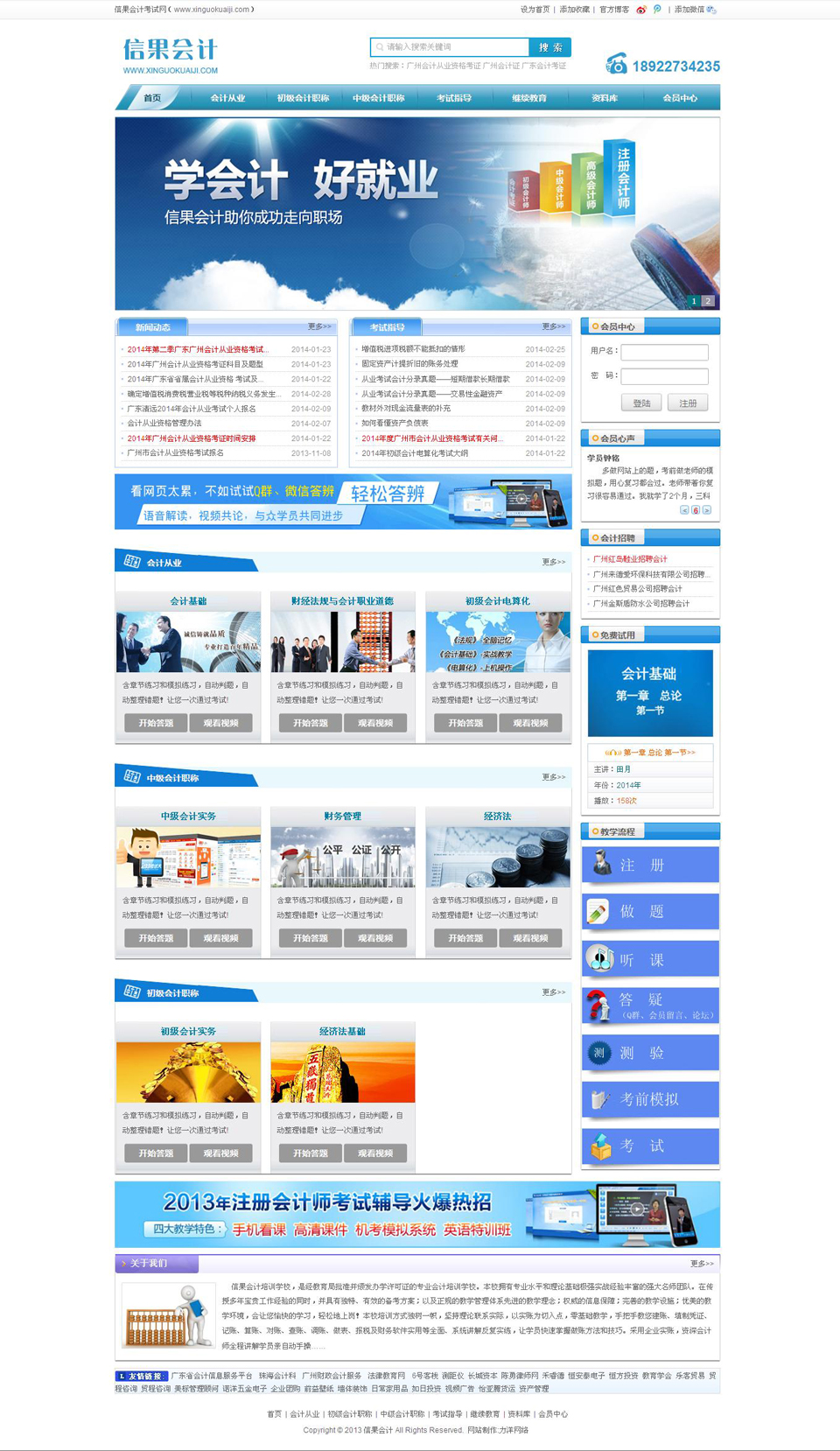 项目名称:信果会计培训网 签定时间:2013-09-28 项目网址:http://www.xinguokuaiji.com/ 项目简介: 信果会计培训学校,是经教育局批准并颁发办学许可证的专业会计培训学校。本校拥有专业水平和