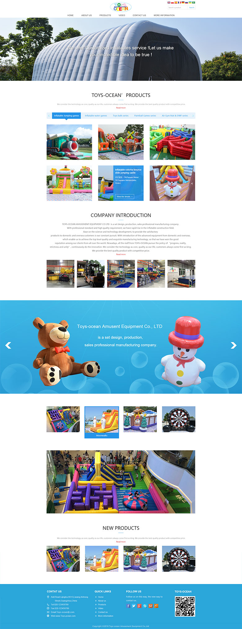 TOYS-OCEAN AMUSEMENT EQUIPMENT CO LTD is a set design, production, sales professional manufacturing company. With professional standard and high quality requirement, we have rapid rise in the inflatable construction field.